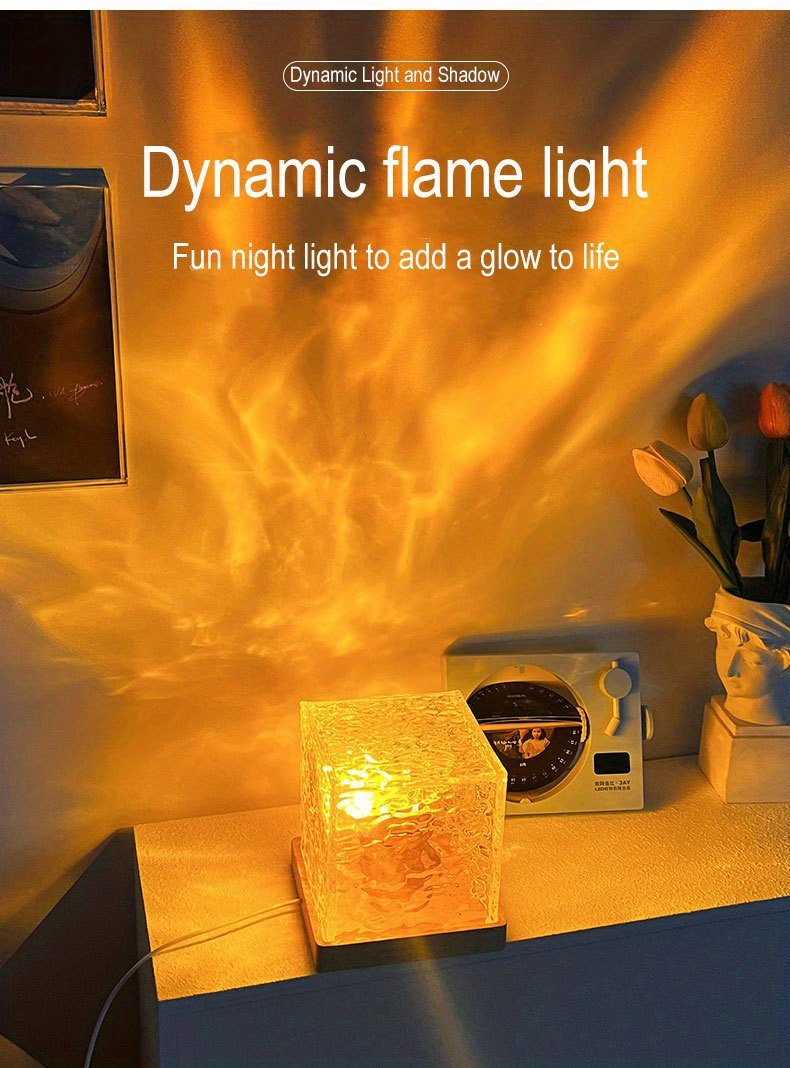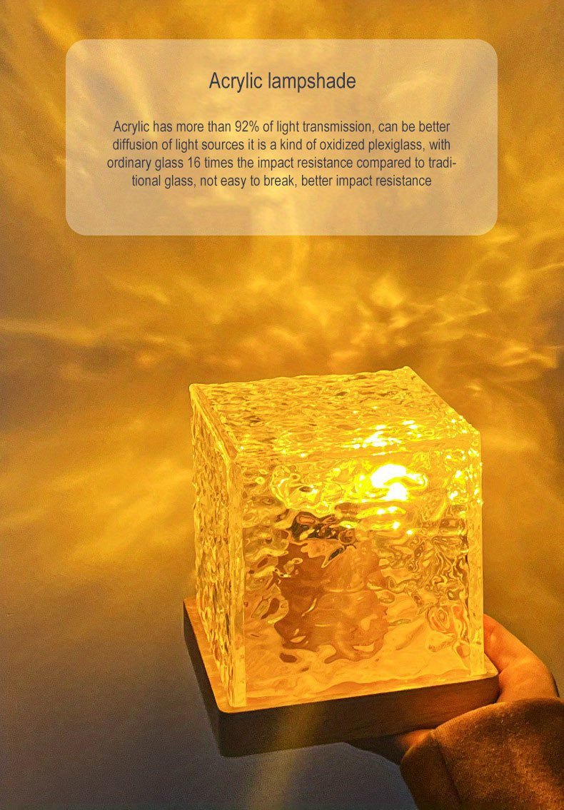 1 Pack USB Square Night Light Cube Decorative Night Lamp Square Crystal Table Lamp, Rotating Water Ripple Small Night Light Creative Bedside Lamp, Flame Atmosphere Lamp Dynamic Table Lamp 5W 80 Lumen16 Colors Diamond Desk Lamps For Bedroom RGB Remote Rota