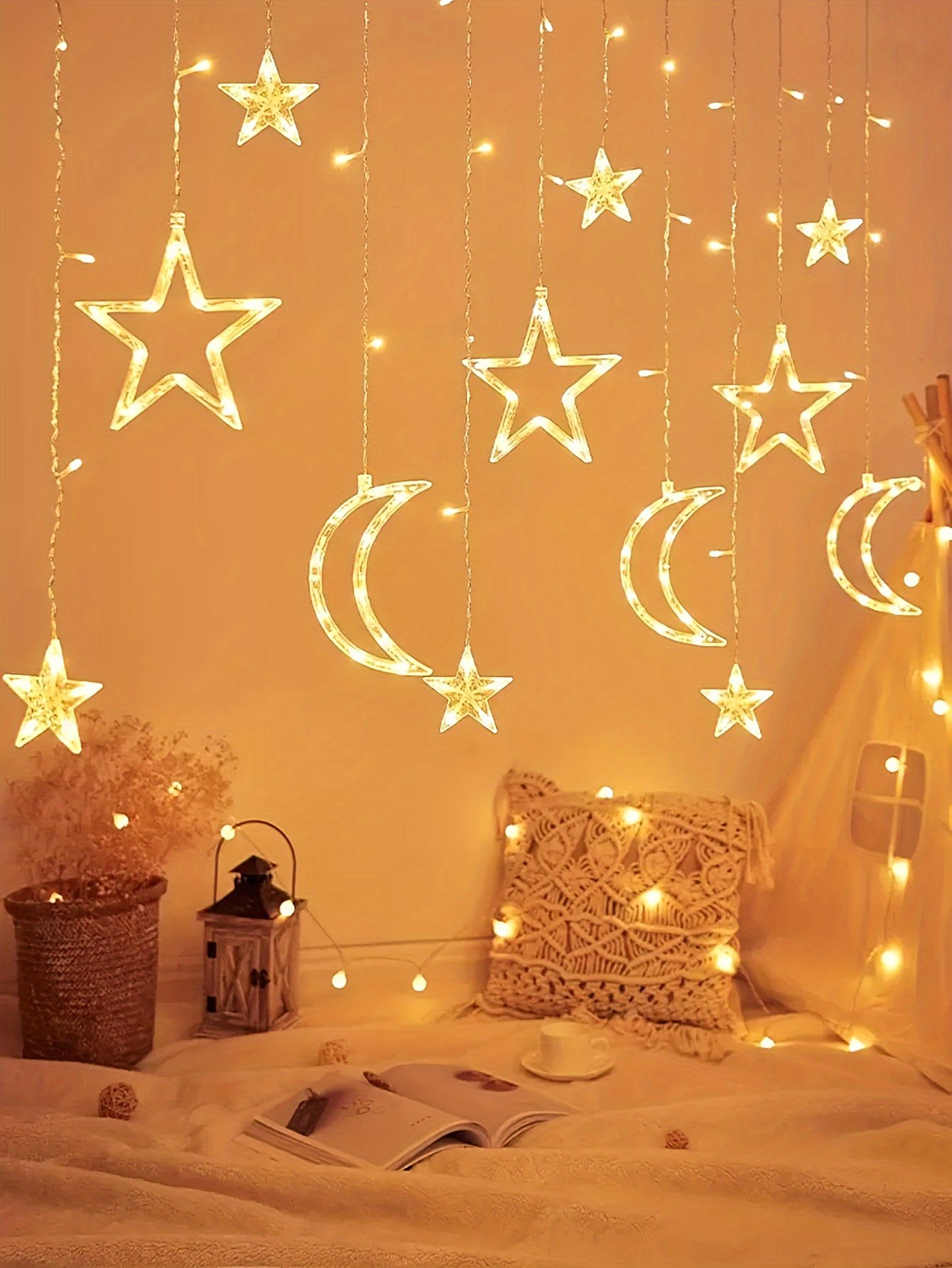3 reviews for 1 set of 12 pieces twinkling LED curtain string lights star and moon string star moon lights Ramadan Christmas decoration lights suitable for wedding Valentine’s Day home garden bedroom outdoor indoor wall decoration