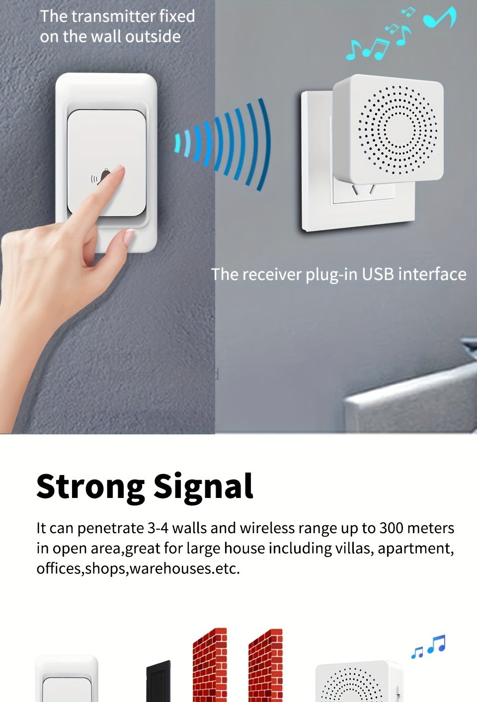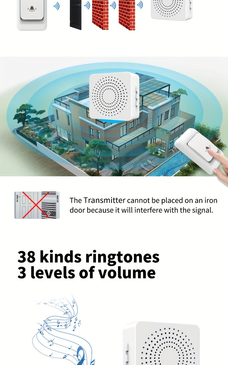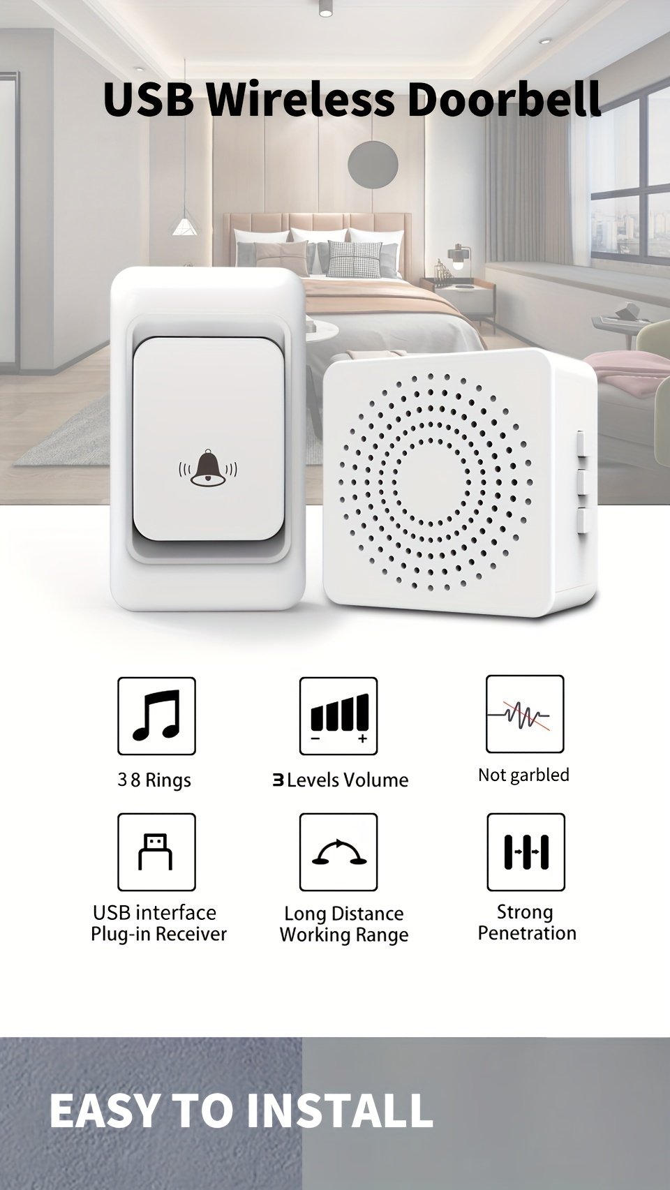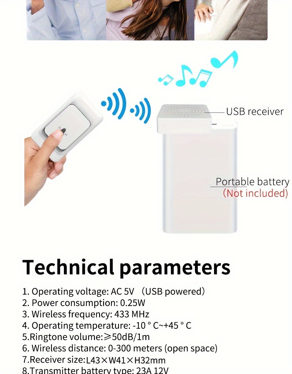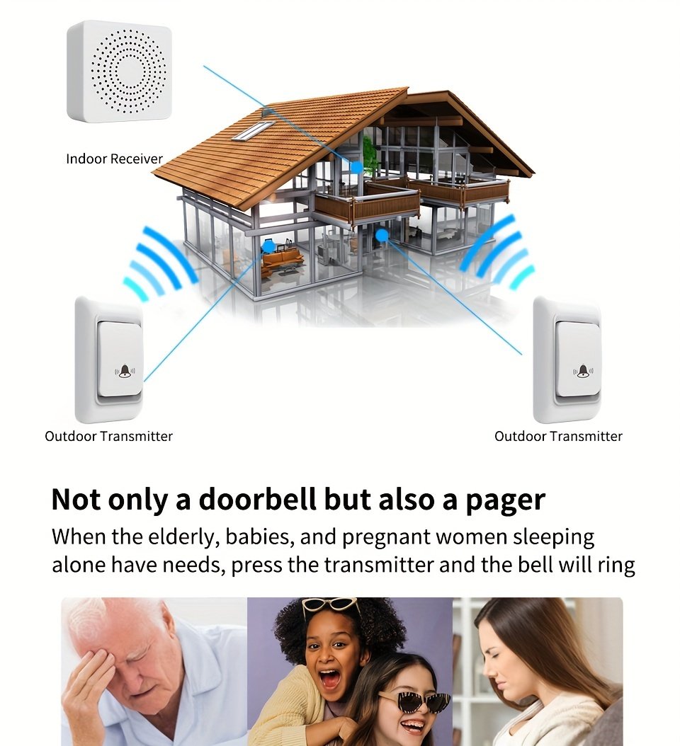 1pc Smart Home, USB Wireless Doorbell, Waterproof, 38 Kinds Of Chime Switching Smart Doorbell, Outdoor Electronic Doorbell, 5905.51 Inches Long Distance Remote Control Doorbell, Jingle Doorbell Wireless Call Doorbell For The Elderly
