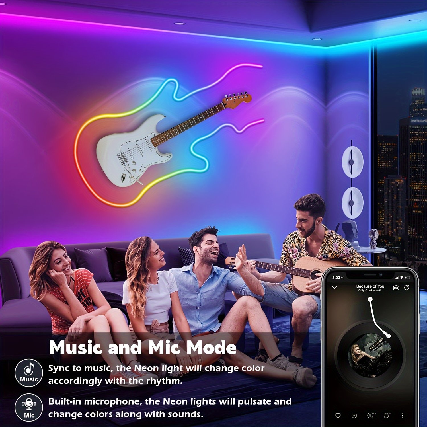 24V LED neon light 50 feet (about 1.9 meters), controlled by application/remote control, flexible LED rope light, multiple modes, outdoor RGB neon light, music synchronization game LED neon light strip suitable for bedrooms and indoor environments