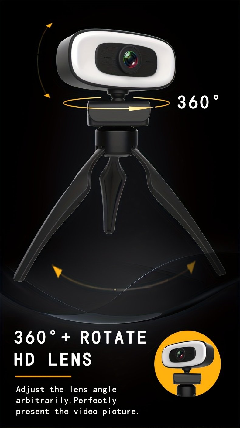 4K HD Computer Webcam, Plug And Play, No Driver Required USB Interface Webcam, Built-in Microphone, Webcast Fill Light, Voice Call Conference Camera, Work Camera, Laptop External Webcam