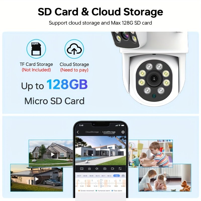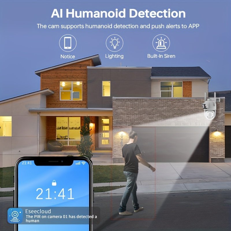4MP(2MP+2MP) WiFi Security Camera Outdoor, Dual Lens 2.4/5ghz Wireless IP Camera Video Surveillance For Home Security CCTV Monitor,AI Human Tracking, Color Night Vision,Two Way Audio,Pan Tilt Rotation,Work For Eseecloud APP,Without TF Card