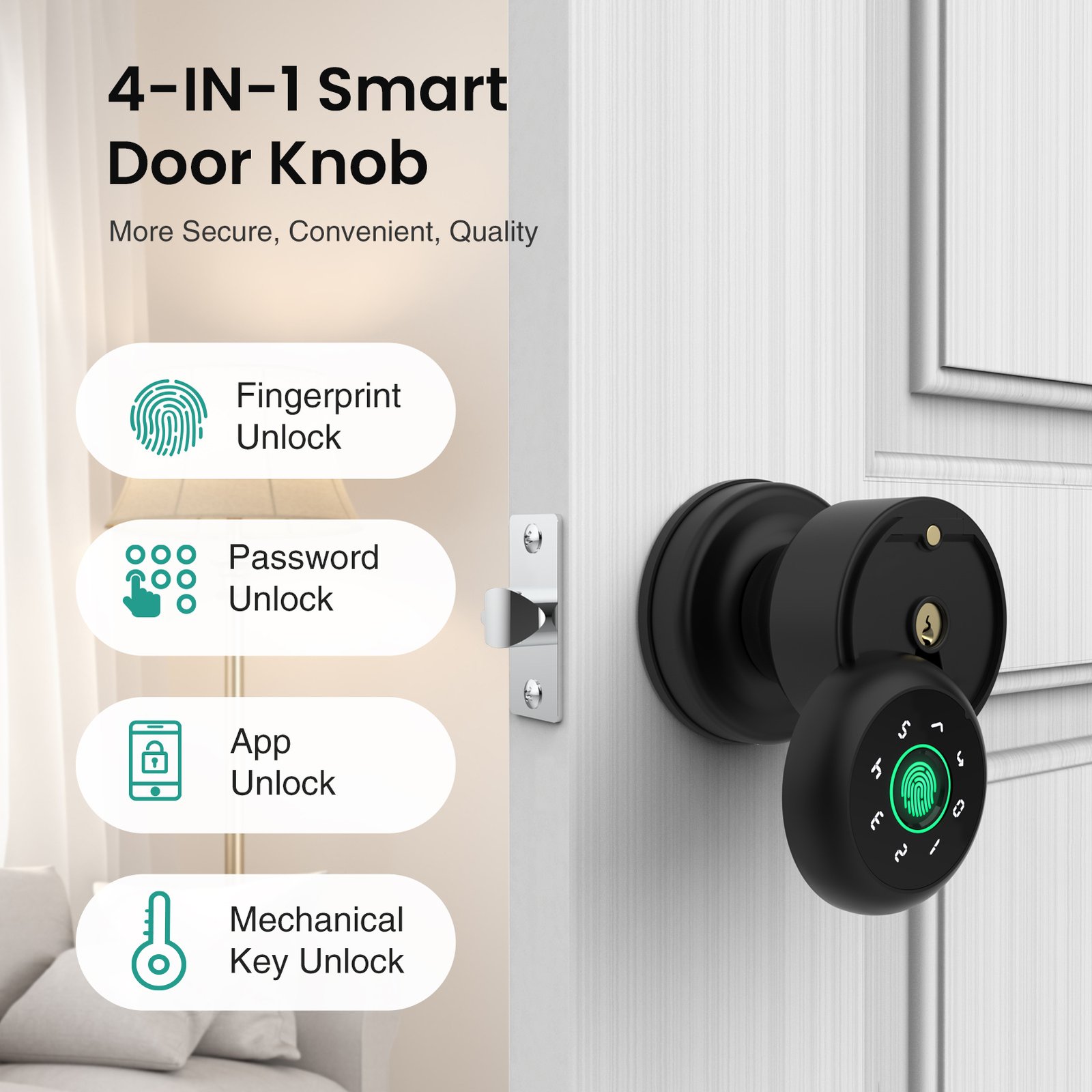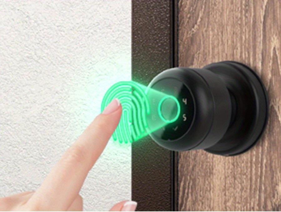 GHome Smart Fingerprint Door Lock with Keypad Door Knob, Biometric Door Smart Lock & App Control, Suitable for wooden or steel doors from 3.5-5.5 cm/ 1.38-2.17 inch, Interior Door Knob with Key Great for Bedroom, Apartments, Offices and Hotels, Uses 4 AAA