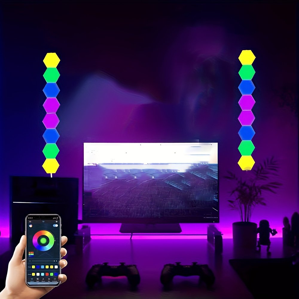 Hexagonal Light Sound Control Light Smart DIY Hexagonal Wall Light Smart Application Control Dual Control LED Light Wall Panel and Usb power Supply for Office Bedroom Games Room Decoration with a Variety of Bright Color Mode Unlimited Creativity Make Grea