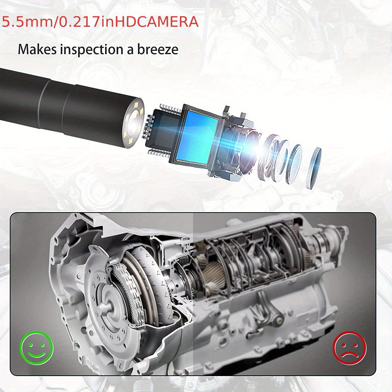 【5.5mm Ultra Thin Probe 】 The borescope with 0.21 inch smal lens inspection camera probe make it easily access a wide variety of confined position, the endoscope camera with light, make inspection work easier in narrow and dark area. Such as small pipe, Home electrical equipment, Car engine and valve inspection, ect.