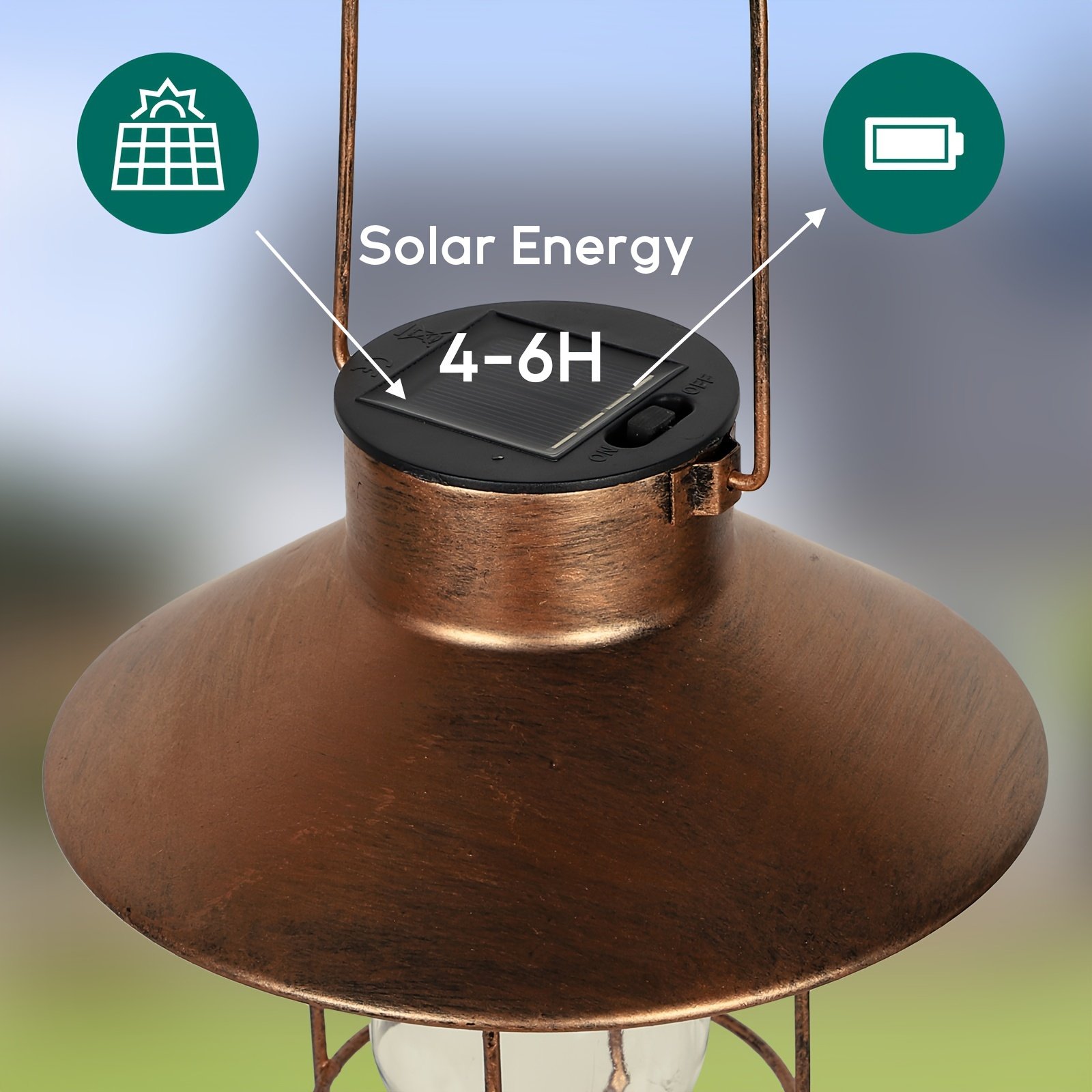 Outdoor Lanterns With Solar Power, Hanging Solar Lights Outdoors, Metal Waterproof Solar Lights With Warm White Edison Bulbs For Fence/garden/yard/porch Decoration