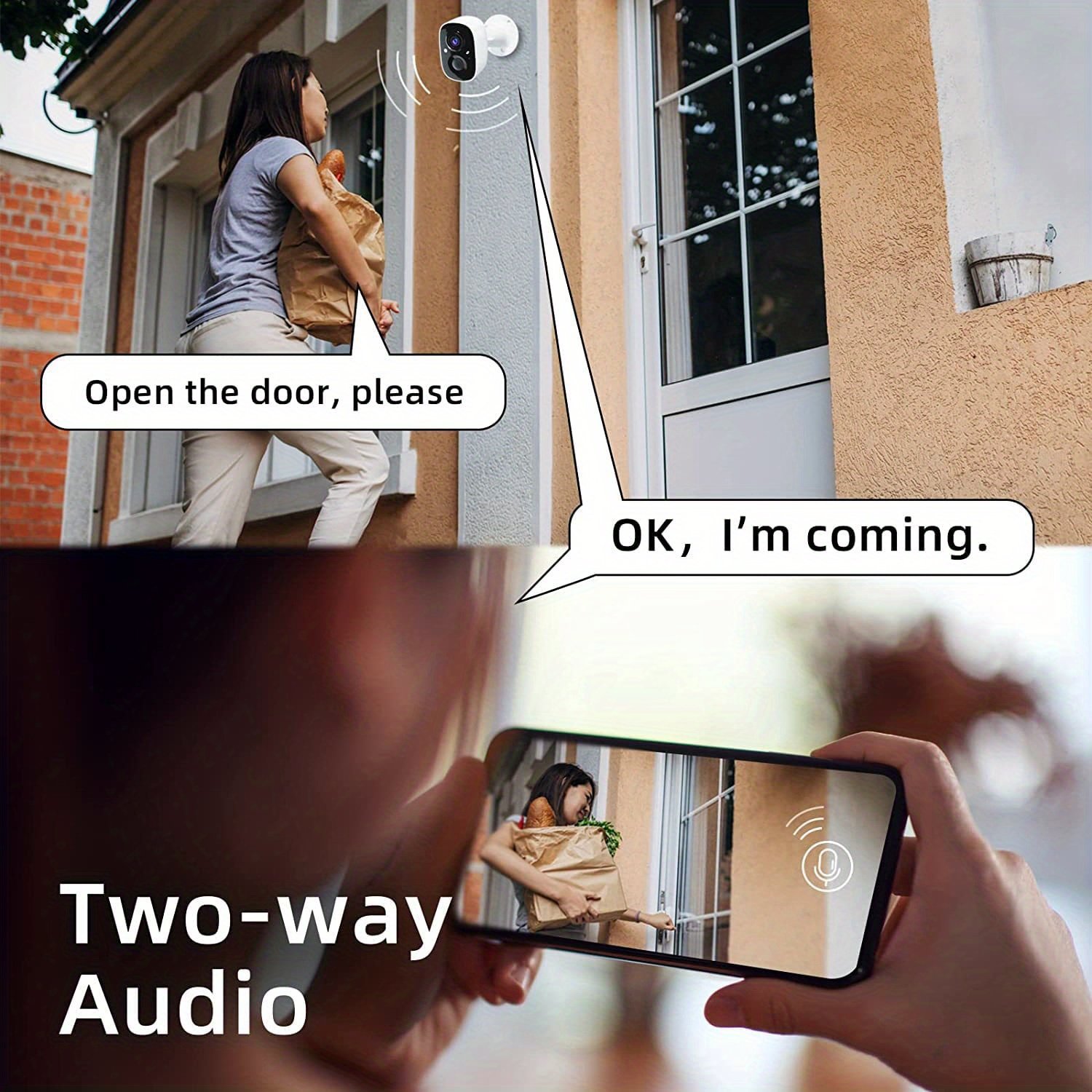 2-Way-Talk& Siren Alarm: For home security purposes, this outdoor camera is equipped with a siren alarm and spotlight, in addition to providing motion notifications. And you can customize your own siren alarm with messages like “Hey, I’ve called the police, please leave now.” The camera also includes a high-quality two-way audio function that allows you to communicate with your family or guests from anywhere and at any time. Also, it can work with Alexa.