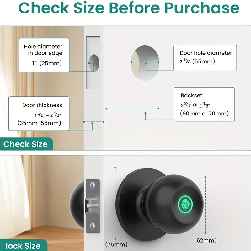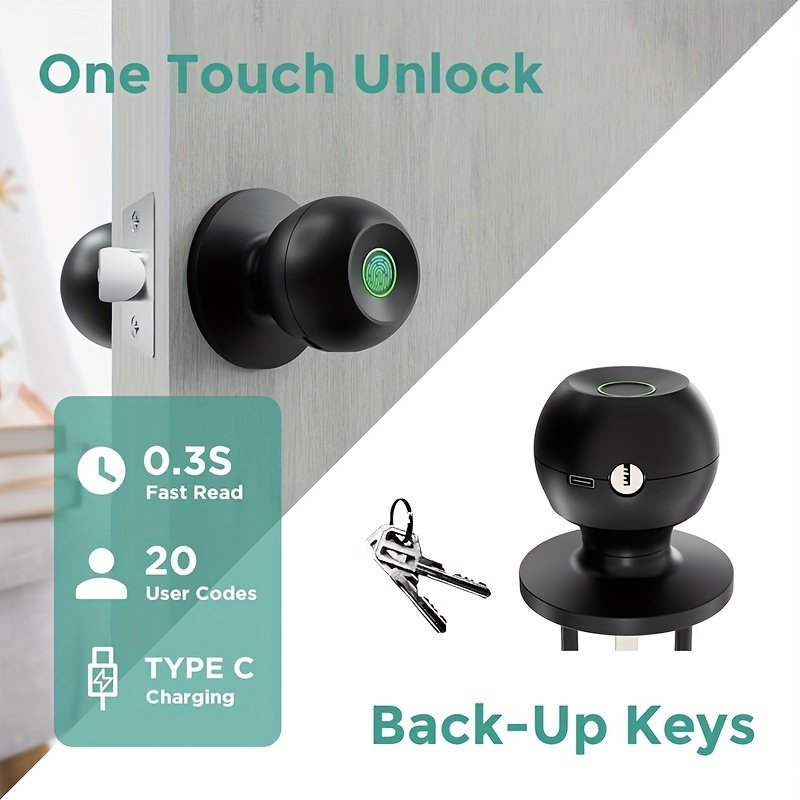 Smart Door Knob, Fingerprint Door Lock Smart Lock Biometric Door Lock Fingerprint Door Knob With App Control, Suitable For Bedroom, Cloakroom, Apartments Offices, Hotels – S10Y