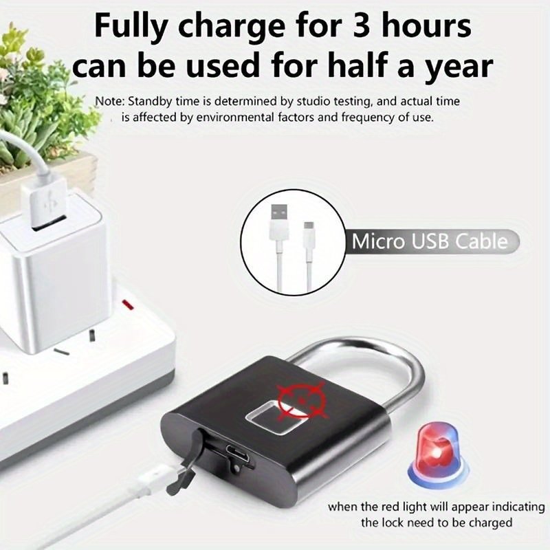 USB Rechargeable: No need to worry about replacing batteries, simply recharge the padlock with a USB cable.