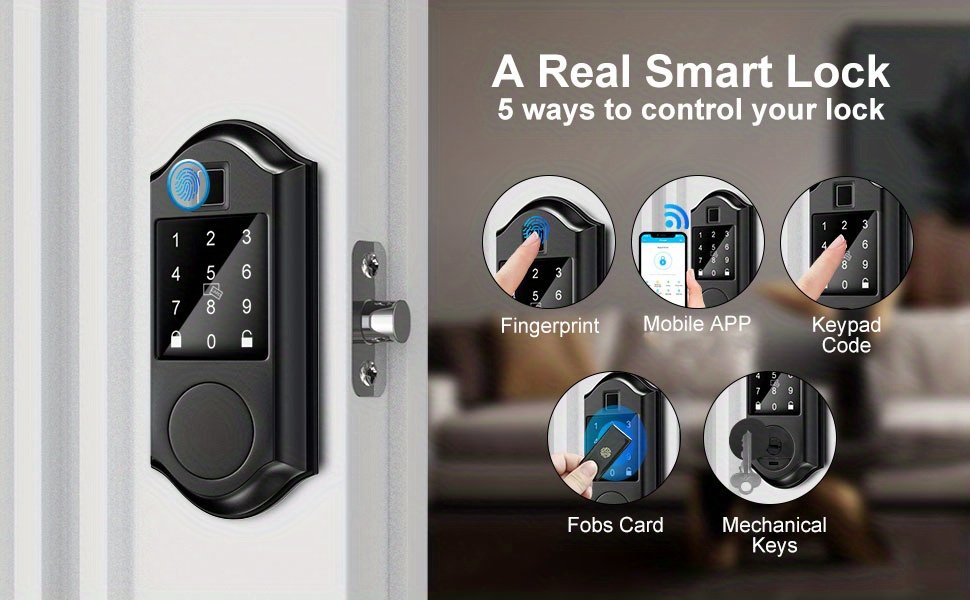 Smart Lock With Fingerprint Deadbolt – 5-in-1 Keyless Entry Door Locks With Keypads & App Remote Control, Waterproof Auto Smart Lock
